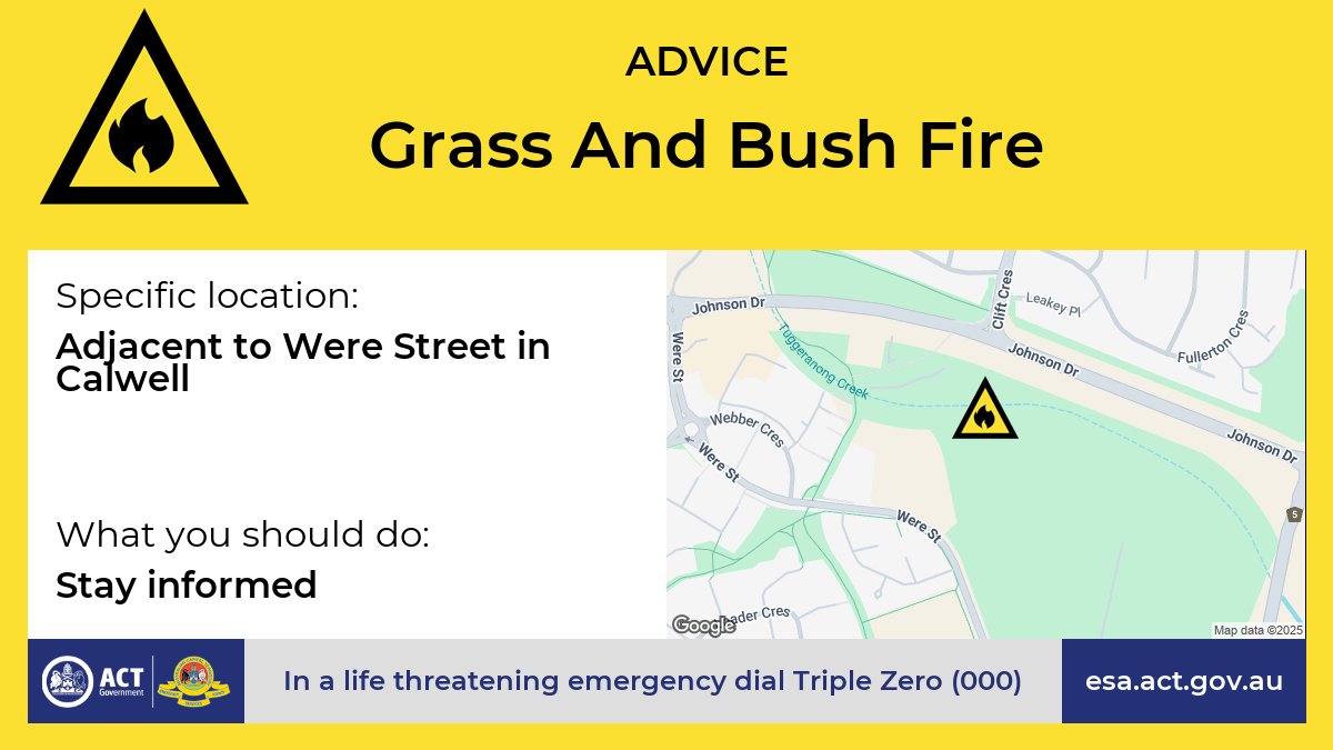 A grassfire is burning in the park adjacent to Were Street in Calwell.