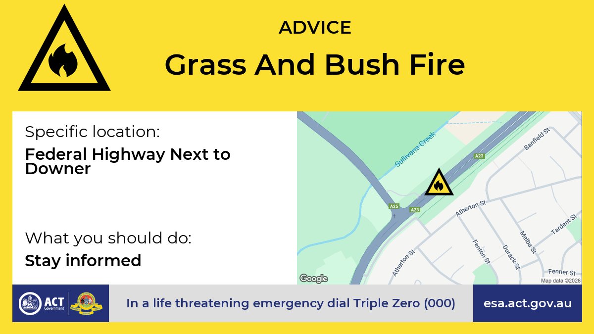 The grass and bushfire near the Federal Highway Next to Downer has been extinguished.