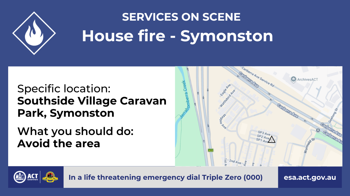 A house fire has occurred in the Southside Village Caravan Park in Symonston.