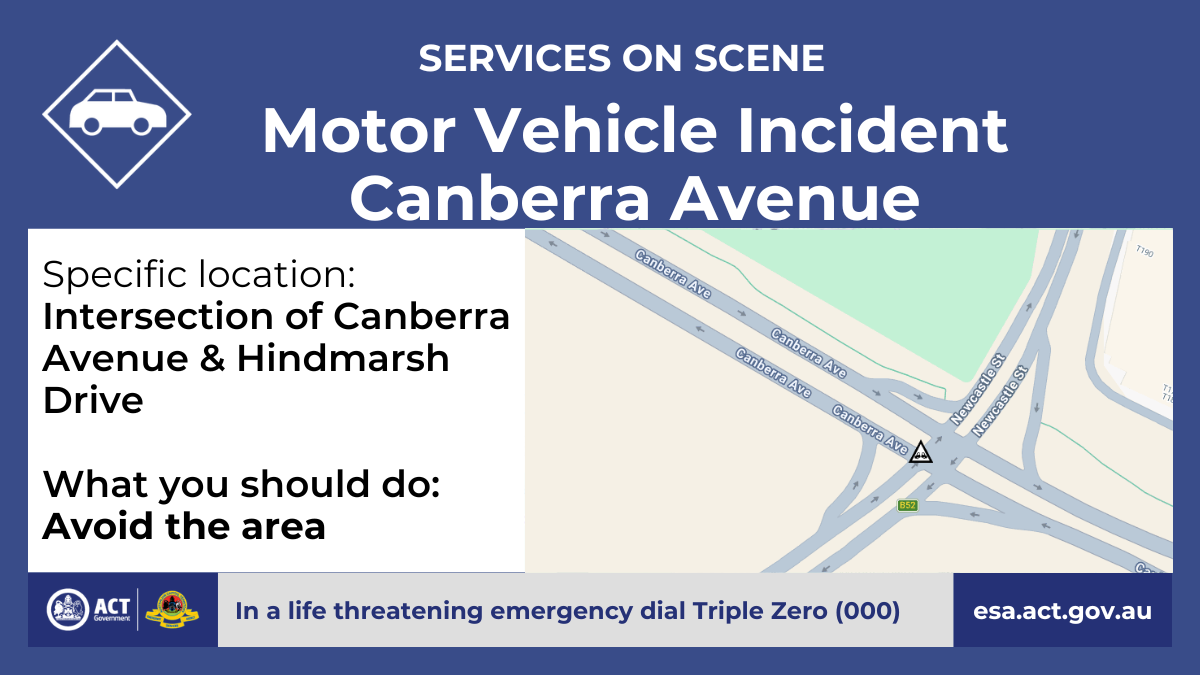 There's been a motor vehicle incident on Canberra Avenue, at the intersection with Hindmarsh Drive.
