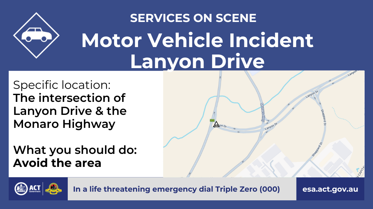 There's been a motor vehicle incident on Lanyon Drive, near the intersection of the Monaro Highway.