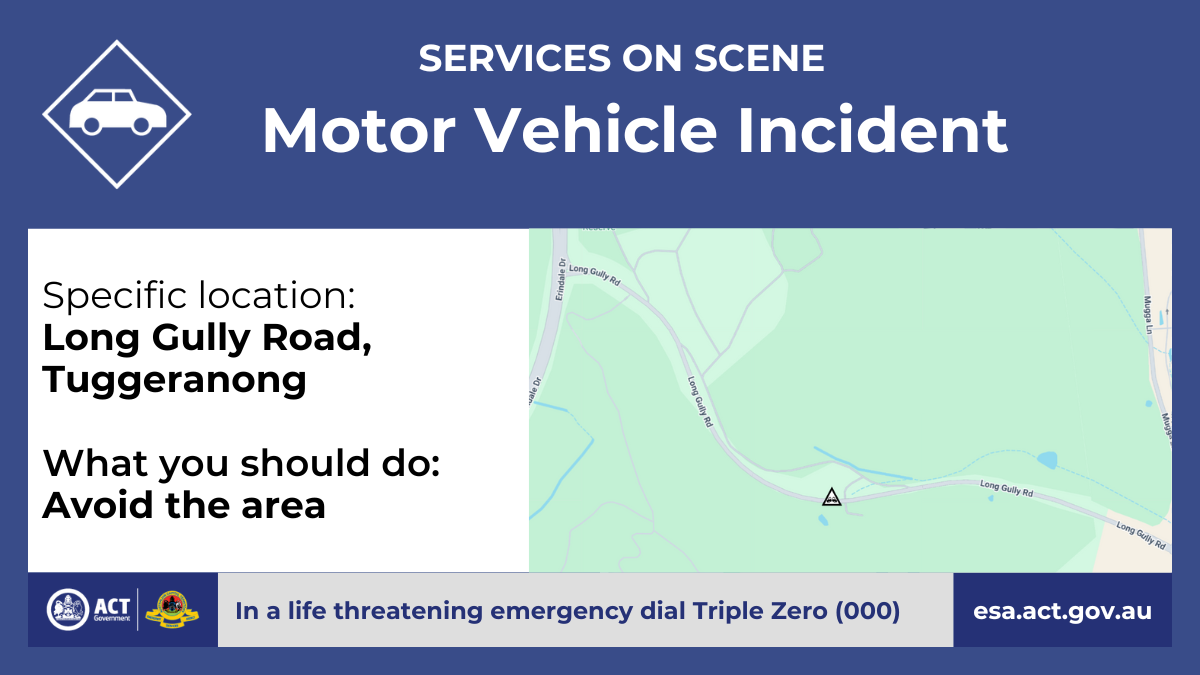 There's been a motor vehicle incident on Long Gully Road, Tuggeranong.