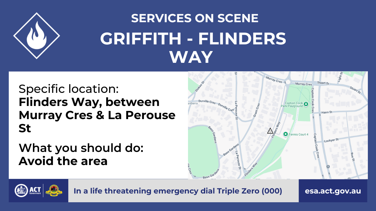 The fire has been extinguished, however, Flinders Way is closed between La Perouse Street and Murray Crescent.